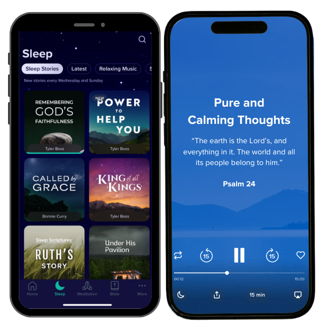 Do you feel anxious right before bedtime? Or perhaps you wake up in the middle of the night and can’t fall asleep because your mind is full of racing thoughts. The Abide App was developed to guider you in Christian Meditation to find sleep and calm. Philippians 4:6-7 instructs us to bring our worries to God so that we can feel His peace. This sleep meditation for anxiety will help you relax and let go of any worries so you can fully feel that divine peace as you drift to sleep.